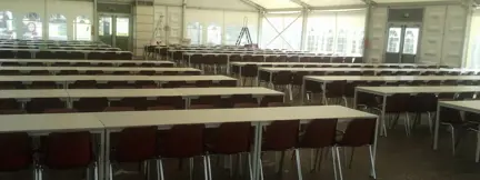 Losberger De Boer Middle East responded by delivering its dynamic Alu Hall temporary structure encompassing a commercial kitchen, food preparation areas and serving counters, together with a large dining area for both staff and management.