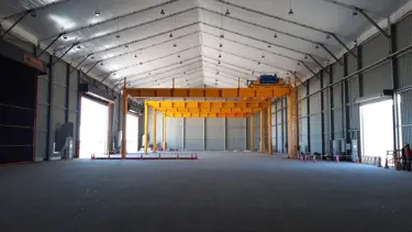 The site supervisors reached out to us because they couldn’t source facilities that could provide all the specific features required for truck maintenance in terms of size (each truck is approximately 15m long, 7m high and 9m wide), load capacity, bridge crane compatibility and quick installation. Thanks to our experience in the mining sector and our understanding of its key regulatory challenges, we were able to provide an all-in-one solution that would meet all their expectations, with specific amenities for haul truck maintenance such as heavy duty flooring, rapid rise doors, 25/5T cranes, as well as fire detection and exhaust gas recirculation systems that are compliant with strict mining norms.