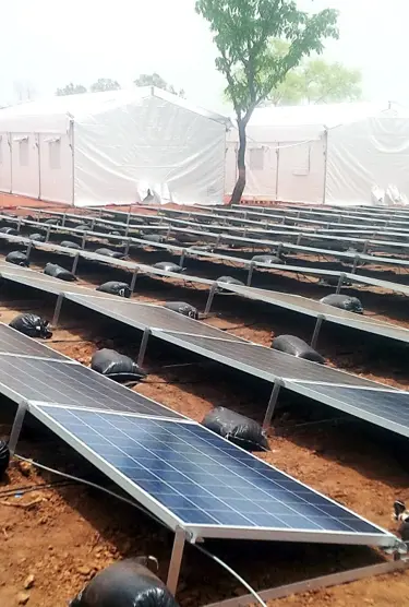 We offer various solar harvesting solutions that can match the installation speed of our products. Our panels can be applied straight onto our tents, or be deployed from an unfolding container unit, and will help you set-up a self-sufficient and sustainable camp.