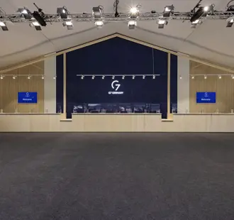 Damit die Besucher die aktuellen Porsche-Modelle in Augenschein nehmen konnten, realisierte Losberger De Boer eine aus 14 verschiedenen Pagodenzelten bestehende Markenwelt. Die temporären Bauten waren auf dem riesigen Areal verteilt und boten neben den präsentierten Sportwagen auch luxuriöse Erholungsflächen.