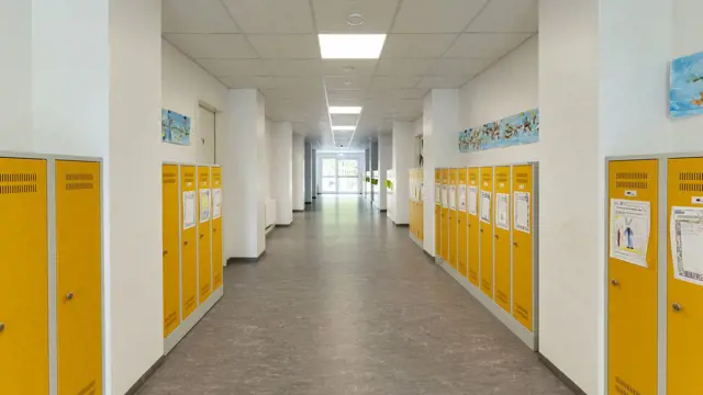 Die Innenräume der Grundschule Meitingen wurden sorgfältig mit Trockenbauwänden und moderner Ausstattung versehen, um eine anregende Lernumgebung zu schaffen. Die Klassenräume sind großzügig gestaltet, mit viel natürlichem Licht und ausreichend Platz für bis zu 8 Klassen mit Gruppenräumen und den erforderlichen sanitären Anlagen.
