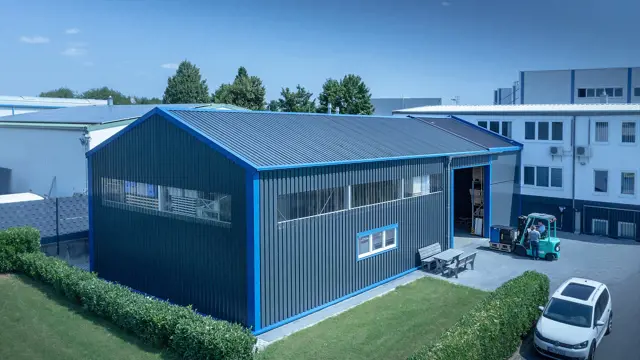 Um der steigenden Nachfrage nach ihren Produkten und Services gerecht zu werden, beauftragte die Geschäftsführung des fränkischen Familienunternehmens, Losberger De Boer mit der Vergrößerung ihrer Räumlichkeiten am Produktionsstandort Neuenstadt. Durch den Anbau einer schnell einsetzbaren, robusten und langfristig flexiblen Induflex-Industriehalle, schufen sie 240 m² an zusätzlicher Lager- und Warenumschlagsfläche. Diese fügt sich nahtlos in das Firmengelände ein und stellt eine räumliche und optische Anbindung zum Hauptgebäude dar.