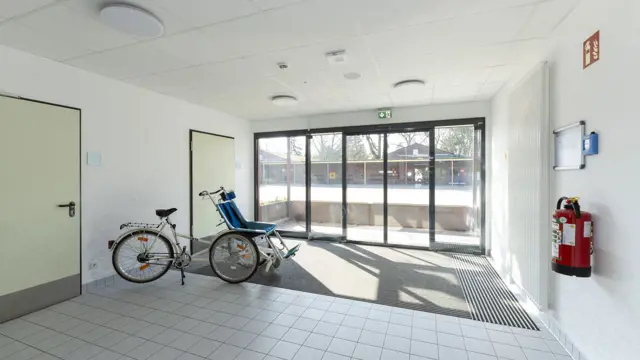 Jeder der 40 maßgefertigten Containermodule wurde mit besonderer Rücksicht auf die Sicherheit und den Komfort der Schüler ausgestattet. Durch die beiden vollautomatischen Eingangsschiebetüren am Haupteingang und dem Windfang ist die Schule ohne Hindernisse zugänglich. Auch in den Toiletten und behindertengerechten Sanitäranlagen ermöglichen spezielle KOS-Schiebetüren eine selbstständige Nutzung durch die Schülerinnen und Schüler. Darüber hinaus sorgen Oberlichter für die notwendige Entrauchung und tragen gleichzeitig zu einem freundlichen und angenehmen Raumklima bei.