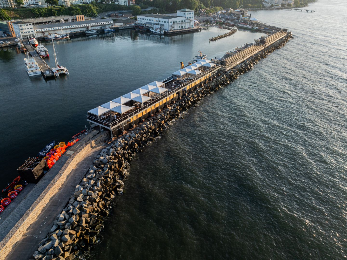 Die Struktur musste erhöht ausgeführt werden, um freie Sichtachsen zu gewährleisten, eine bestehende Mauer auf der Mole überbrücken und sämtliche deutschen Zertifizierungsanforderungen erfüllen — und das innerhalb eines engen Zeitfensters. Gleichzeitig sollte das Ambiente ruhig, komfortabel und eindeutig im Premium-Segment verankert sein.