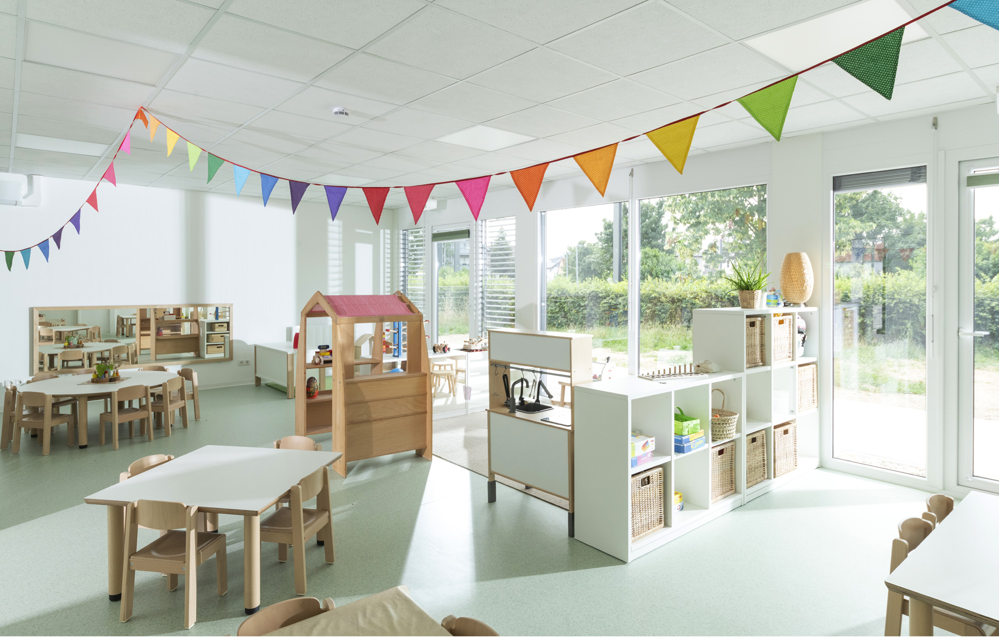Für die Stadt Stutensee, in der Nähe von Karlsruhe, realisierte Losberger De Boer eine neue Kindertagesstätte innerhalb von nur zwei Monaten. Um dem großen Bedarf an Betreuungsplätzen gerecht zu werden, benötigten die Verantwortlichen der Stadt dringend eine Lösung. Da aufgrund einer umfangreichen brandschutztechnischen Sanierung freigewordene Räume in der Richard-Hecht-Schule kurzfristig nicht genutzt werden konnten, entschied man sich für eine Modulbaulösung von Losberger De Boer.