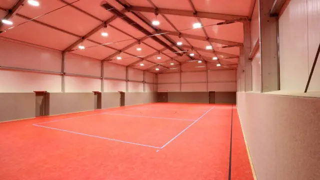 Toda la instalación deportiva se entregó llave en mano, es decir, totalmente equipada, incluyendo suelo deportivo técnico, paredes deflectoras y techo aislante térmico y acústico.