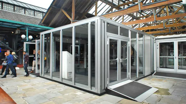 Una opción muy popular es instalar paneles de cristal en los laterales para darle a esta estructura temporal un carácter abierto y permitir que sus invitados vean tanto adentro como afuera, al mismo tiempo que están aislados del exterior. Puede poner señalética o branding para mejorar aún más la experiencia total de la marca.
