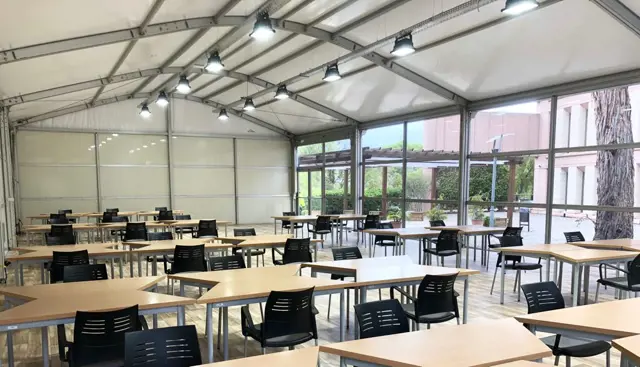 Estamos dedicados a mantener la seguridad de las personas y mantener las escuelas en funcionamiento. En todo el mundo, las estructuras de Losberger De Boer se están utilizando para ayudar a las empresas e instituciones a crear espacio adicional para el distanciamiento social, con el fin de mantener a todos a salvo y luchar contra la pandemia.