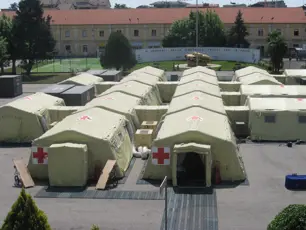 Nos structures rapidement déployables peuvent être utilisées pour le triage, peuvent fonctionner comme des salles d'hôpital et des centres de quarantaine. Nous avons également développé des centres de vaccination intelligents et des sites d'essai en drive, qui peuvent être déployés rapidement. Qu'entend-on par "rapide" ? En quelques jours seulement, nous pouvons commencer à construire nos installations temporaires.
