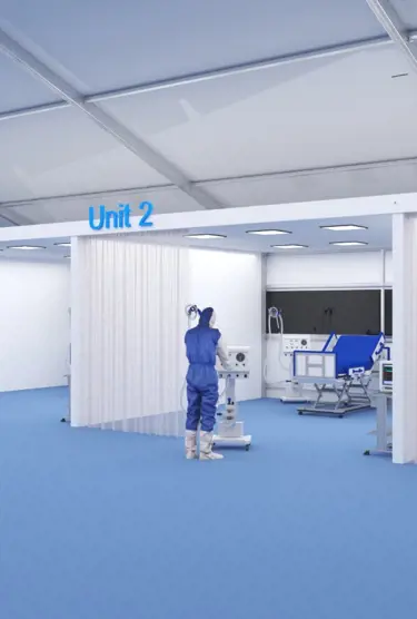 En tant que l'un des plus grands fournisseurs de bâtiments temporaires et permanents au monde, nous pouvons fournir aux hôpitaux et aux institutions médicales l'espace supplémentaire dont ils ont besoin pour assurer la sécurité de tous et traiter efficacement les personnes.