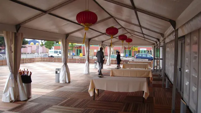 En ce qui nous concerne, les obstacles n'existent pas. Si vous voulez installer l'Alu Party dans un jardin avec un étang, nous n'avons qu'à monter la tente par-dessus. La structure elle-même n'a pas de colonnes de soutien à l'intérieur et pas de cordes de tension à l'extérieur. Vos invités ne trébucheront pas et ne se heurteront pas à des objets pendant la fête.