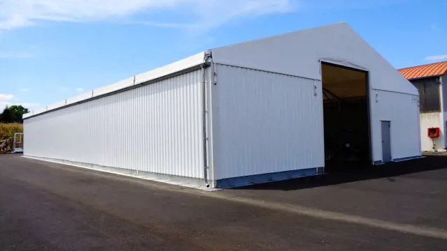 La toiture en PVC du hangar de stockage Alustock est durable et étanche. Elle respecte toutes les normes CTS en vigueur pour la sécurité des biens comme des personnes. La toiture de l'entrepôt Alustock est dimensionnée pour supporter 20 kg/m2 de neige et un vent de 100 km/h.