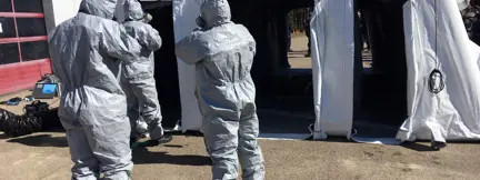 Modulaires, nos tentes et cabines de décontamination peuvent être intégrées dans des systèmes ColPro plus complets, ou utilisées comme solutions autonomes pour le contrôle des risques industriels, ainsi que pour des exercices militaires ou des opérations de décontamination d'urgence.