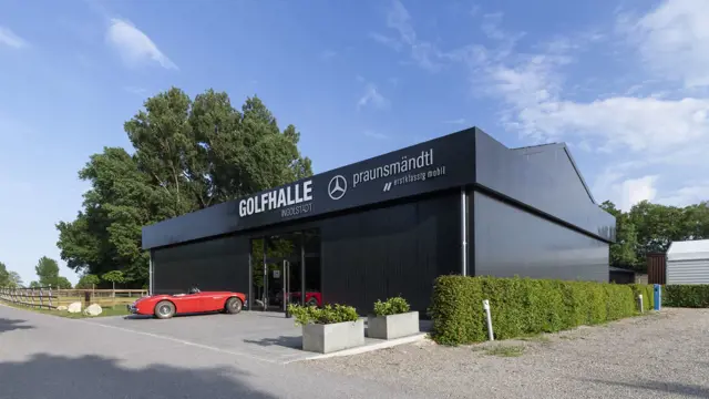 The customer's demands on the hall were anything but standard: The renowned Ingolstadt Golf Club was looking for a solution for the club's members to still be able to play golf in extreme heat, bad weather or freezing cold - an indoor golf hall was the perfect solution for this.