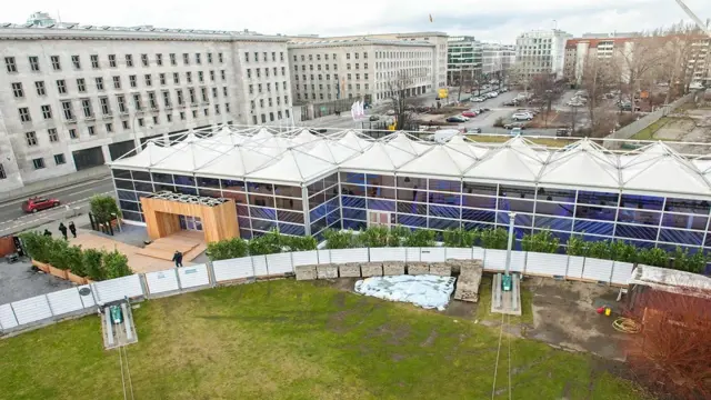 The entrance to the hub was marked by an impressive glass facade with cladding and a wooden walkway. Part of the space was designated for discussions and debates.