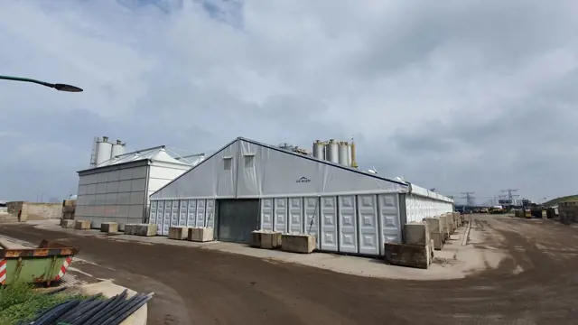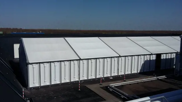 The Alu Hall is a robust, no-frills building. It’s named after its aluminium A-frame structure, and comes equipped with a strong, fireproof PVC façade and roof. The PVC side panels ensure a mild interior climate, while a peak ventilation system facilitates natural ventilation. In certain cases, additional ventilation may be necessary to release excess heat. We can equip the hall with a ‘Cuckoo’, a nifty roof ventilation grid that enables extra, draught-free air circulation, while maintaining a comfortable indoor climate.