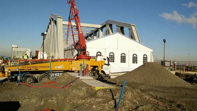 In diverse opbouwfases hebben wij delen van de brug te overkapt, zodat de bouwploegen gemakkelijk verder konden werken in de vereiste geklimatiseerde omstandigheden. Dit vereiste veel projectoverleg tussen onze Operations Manager en de Werfleider, alsmede een zeer strakke logistieke planning, omdat onze nieuwe opbouw steeds exact klaar moest zijn wanneer de bouwteams aan het volgende deel van de brug gingen beginnen. Voor het overkappen van de brug hebben we onze snel plaatsbare en zeer flexibele Alu Hal gebruikt.