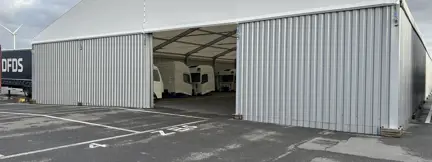DFDS Gent had snel een weerbestendige opslagruimte nodig voor vrachtwagencabines. Losberger De Boer leverde een duurzame, flexibele structuur, waardoor de verwerking efficiënt en zonder onderbreking doorgaat.