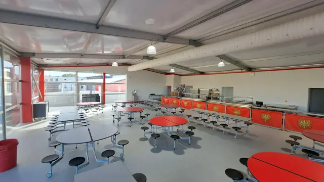 “Door het RAAC-probleem zijn we onze keuken en 2/4 van onze eetzalen kwijtgeraakt. We hebben 1600 kinderen en we zijn letterlijk het halve gebouw kwijt. We hebben een lunchpakket verzorgd voor onze leerlingen met een gratis schoolmaaltijd, maar dat was alles wat we konden aanbieden en dat werd lokaal op een andere school gemaakt en naar de andere school vervoerd.