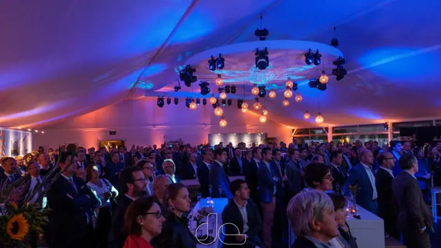 Voor dit bedrijfsevenement hebben wij een complete evenementlocatie opgeleverd, bestaand uit een feesttent met een luxueuze uitstraling, ontvangstruimte, vestaire, overdekt terras en huisvesting voor de catering. De individuele gebouwen werden met elkaar verbonden met behulp van onze Walkways, zodat één grote evenementruimte ontstond.