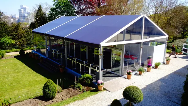 Dit gecombineerde tentsysteem komt uit onze Franse lijn van voormalig Walter-producten en kan worden gebruikt op een breed scala van grote en grootschalige evenementen. Dankzij zijn extreme veelzijdigheid kan het worden gebruikt om de perfecte ruimteoplossing te bieden op tal van evenementen. Van een catering- of eetgelegenheid tot een receptie, en van een feestzone tot een tentoonstellingsruimte, gasten zullen zich altijd welkom voelen in deze gastvrije structuur.