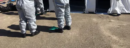 Onze decontaminatietenten en -cabines zijn gemakkelijk te installeren en te vervoeren en kunnen worden geïntegreerd in bredere Colpro-systemen, of worden gebruikt als op zichzelf staande oplossingen voor industriële gevarenbeheersing, militaire oefeningen en noodontsmettingsoperaties.