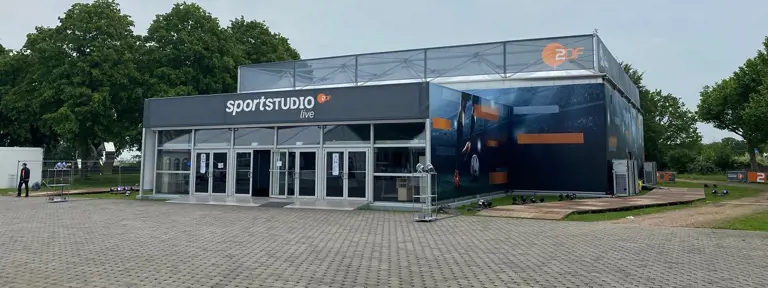 Thomas Fuhrmann, Head of Sports at ZDF, explains how the use of mobile space solutions as a film studio came about: "There was not enough capacity on the ZDF site because all the studios are completely full. That's why we built the temporary Sportstudio arena."