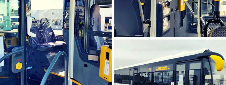 Losberger De Boer has devised a transparent, safe and easily removable solution to better protect drivers. A transparent tarpaulin screen completely shields the area where the bus driver is seated, as it is connected seamlessly to both floor and ceiling. It is attached with Velcro, allowing the driver to remove it quickly in case of emergency.