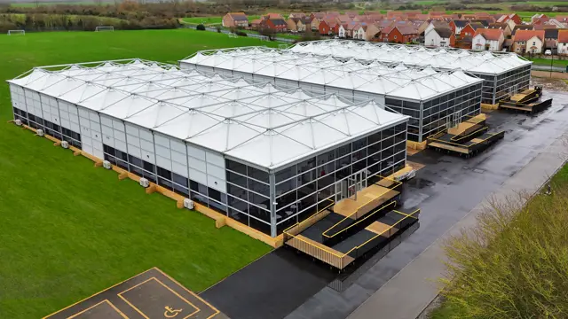 If you need space to grow (or maintain) your business, than the Delta is the perfect structure for you. The geometric lines of the space-frame structure create a distinctive roof-line whilst also providing clear internal heights of up to 9m and gable widths of up to 65m, with column free spans of up to 35m, where required. Multiple Delta’s can be combined to create tens of thousands of square metres of free space.