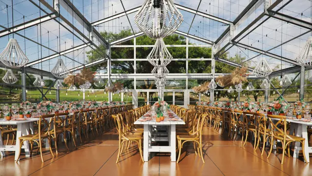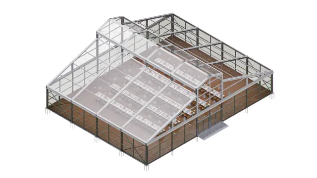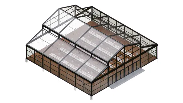 In addition to its striking roof shape, the Levo offers the option to be delivered fully transparent. This feature is especially ideal for events held during the daytime or in picturesque outdoor locations. With a transparent roof, you can effortlessly bring the beauty of nature into the event space while still providing protection from the elements. Another standout feature is the robust frame, which works nicely with the transparent panels.