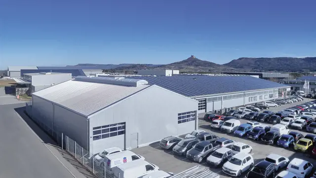 The storage hall with A-frame roof was calculated with a snow load of 195 kg/sqm, which is above average for Germany. However, this high number was mandatory for the assembly in Bisingen, in the Zollernalbkreis.