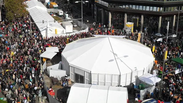 Losberger De Boer offers high-end event structures in all shapes and sizes, which is illustrated nicely by our round-shaped Rondo add-on. It is a great addition to your A-frame stock and the perfect solution for when someone needs to be the center of attention, for instance during a presentation, conference or speech.