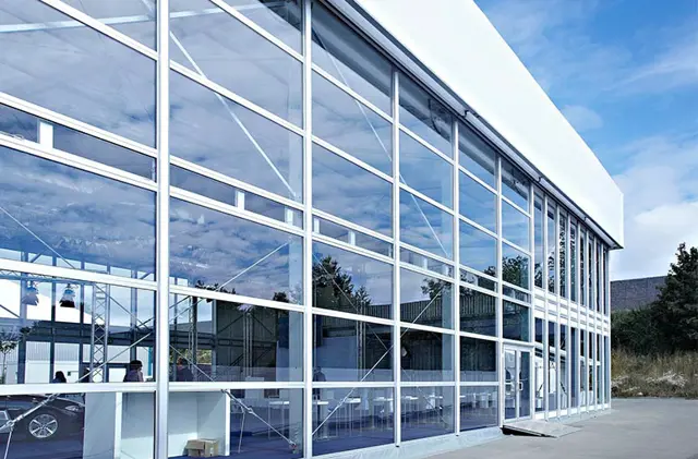 Plastic panels are an alternative to PVC side curtains and are used to create solid walls particularly in connection with a floor. Our high quality horizontal and vertical glass elements give a structure a more elegant and classy look, while offering a nice view and allowing daylight to enter the building.