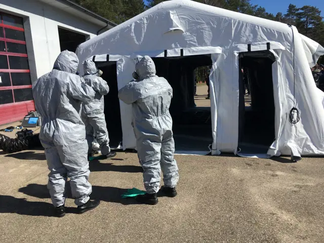 Decontamination tents are the perfect means to carry out onsite cleaning and decontamination procedures after a chemical plant explosion or incident in which hazardous materials are released. As speed is of the essence, our decontamination tents are easy to transport and install; you can have a fully equipped decontamination system in place in less than half an hour.